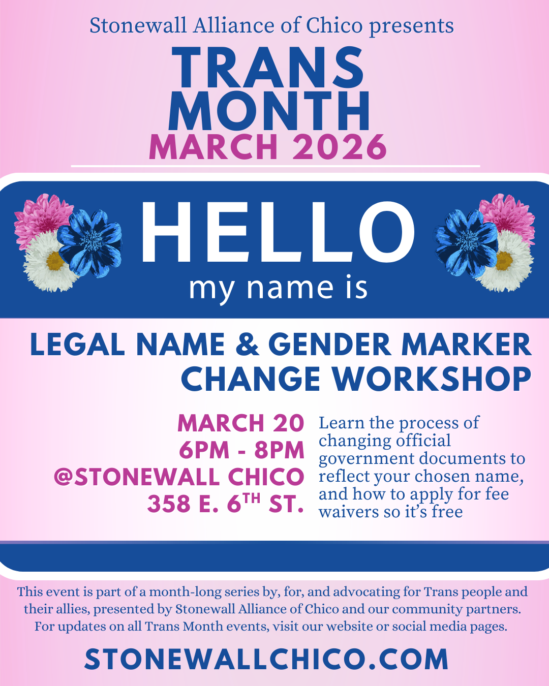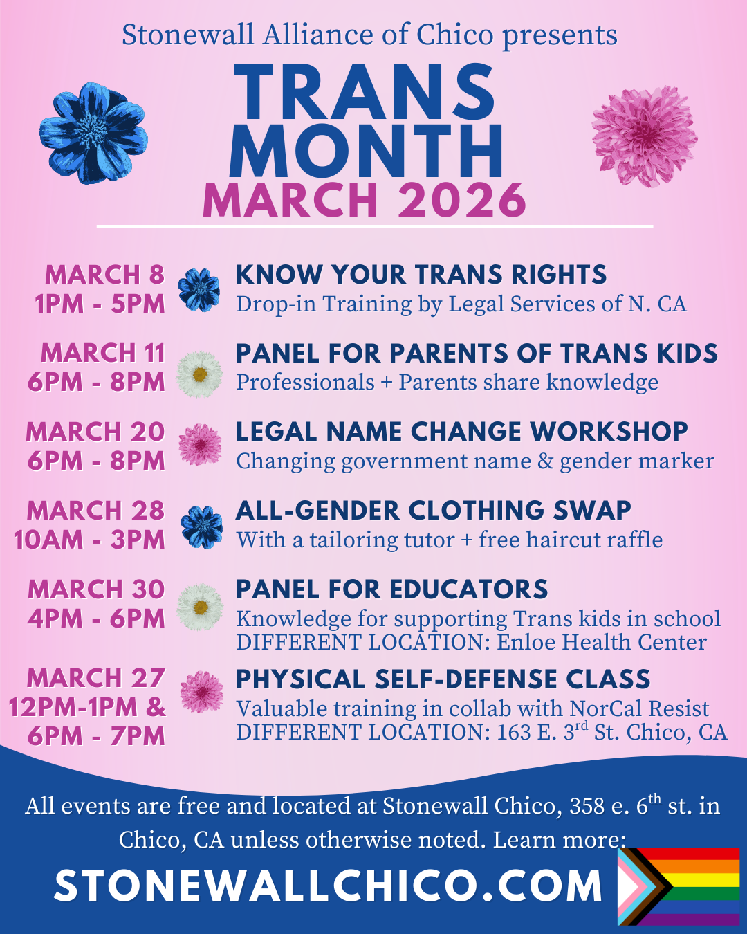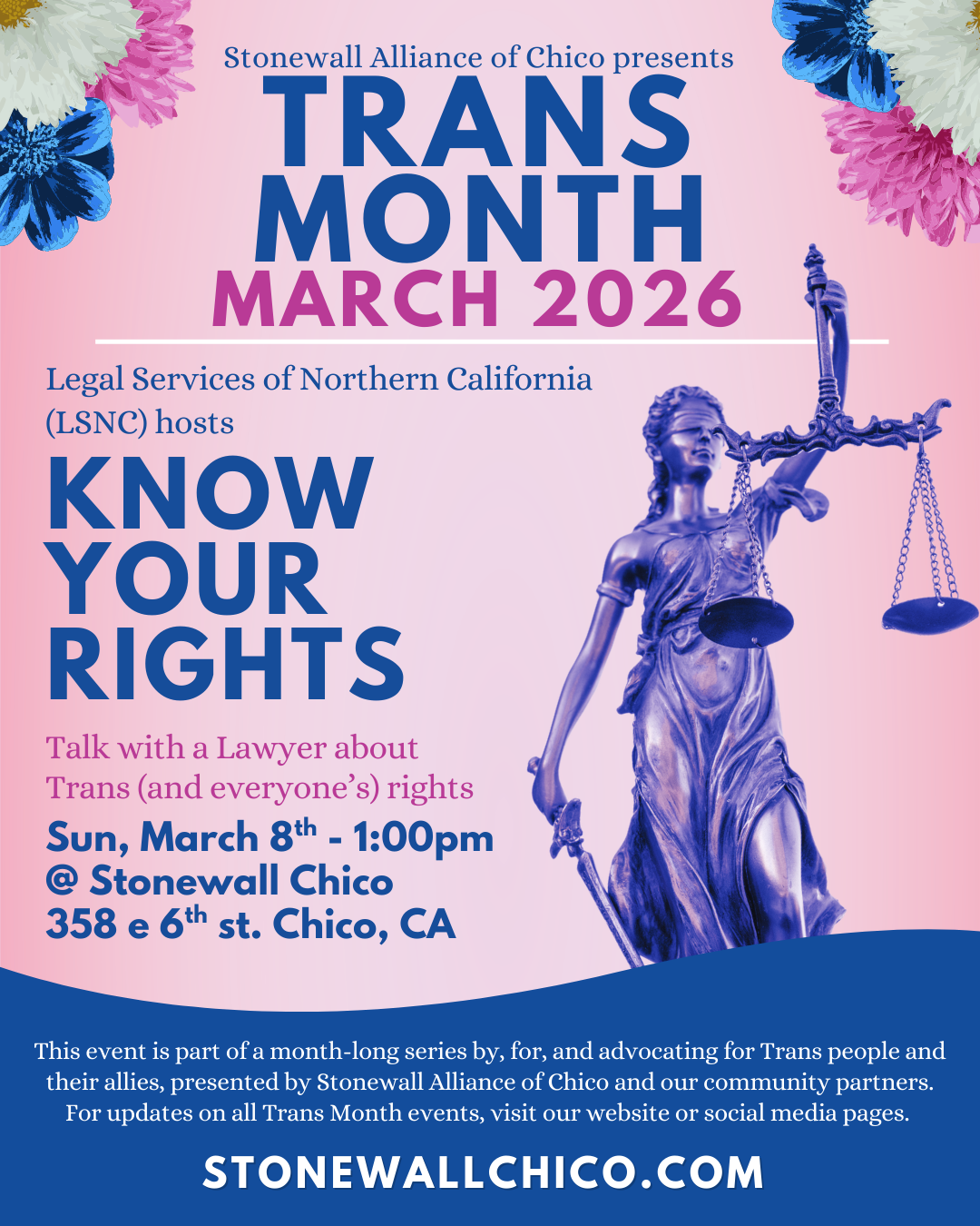 Join us this March as we honor Trans Month and celebrate Trans Day of Visibility (March 31st) with a month-long series of empowering events! From social gatherings and art nights to legal workshops and health-focused discussions, these events aim to uplift, support, and provide essential resources for the Trans and gender-expansive community, as well as their allies.
